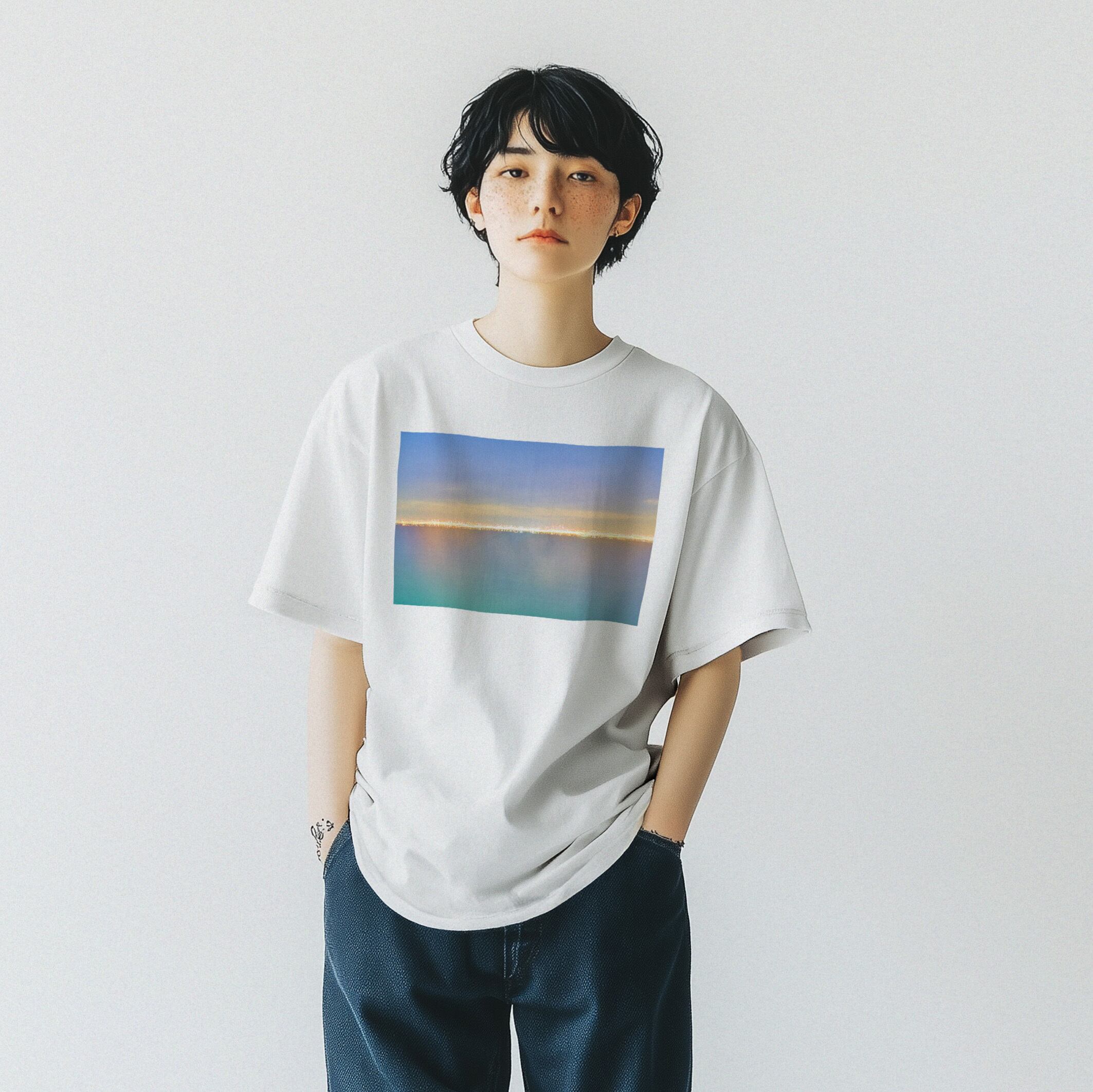 東京から八丈島に向かう夜のフェリー上から、東京の光を3分間の露光で捉えたアートワーク《Lethe(レーテ)》をTシャツにプリント。